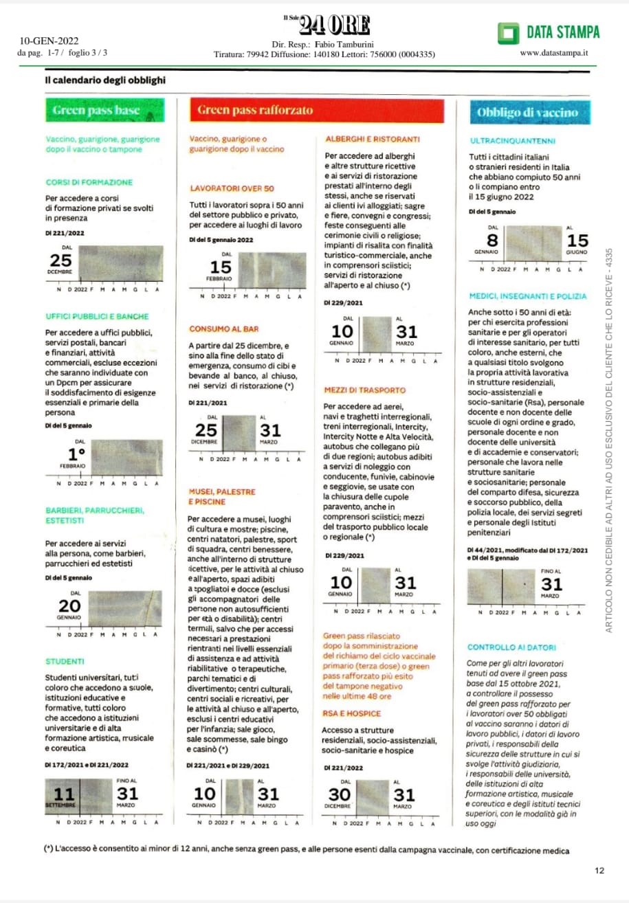 IL CALENDARIO DEGLI OBBLIGHI (COVID 19)
