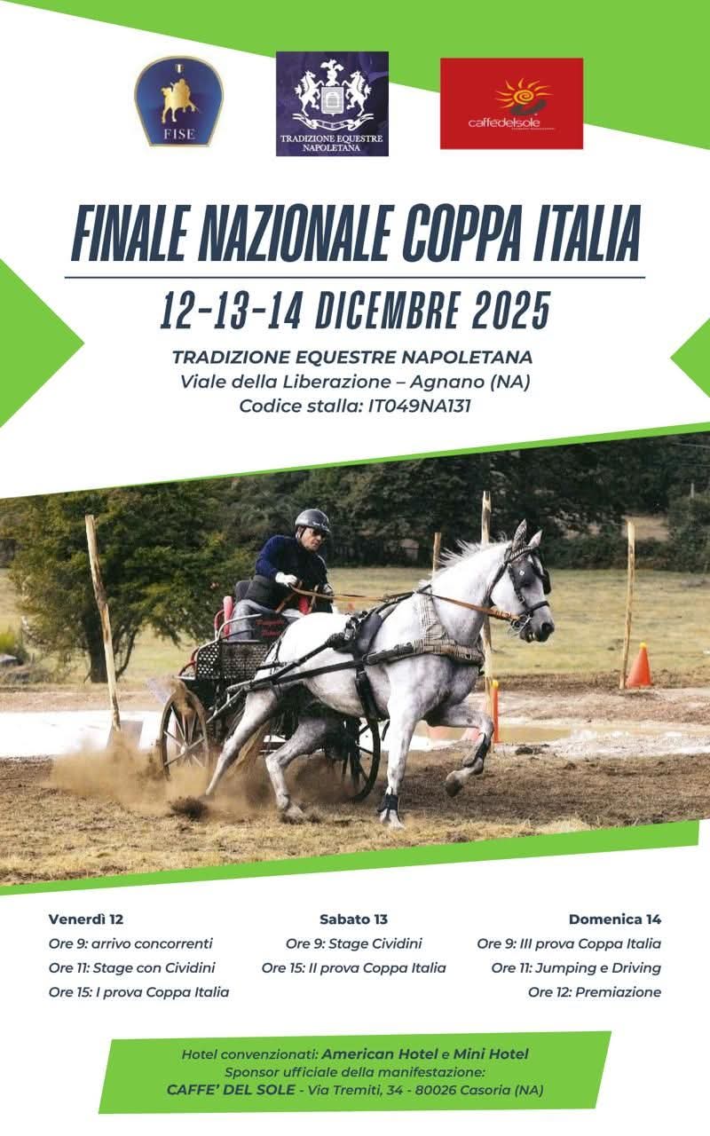 Nei giorni 12, 13 e 14 dicembre si terrà presso il Centro Ippico Tradizione Equestre Napoletana lo Stage Federale con Cividini e Coppa Italia Attacchi