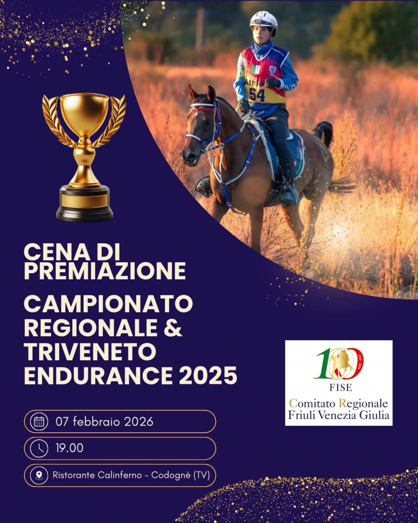 Endurance 6-Feb-2026 Venerdì, 06 Febbraio 2026 Cena di premiazione Campionato Regionale e triveneto endurance 2025 Leggi