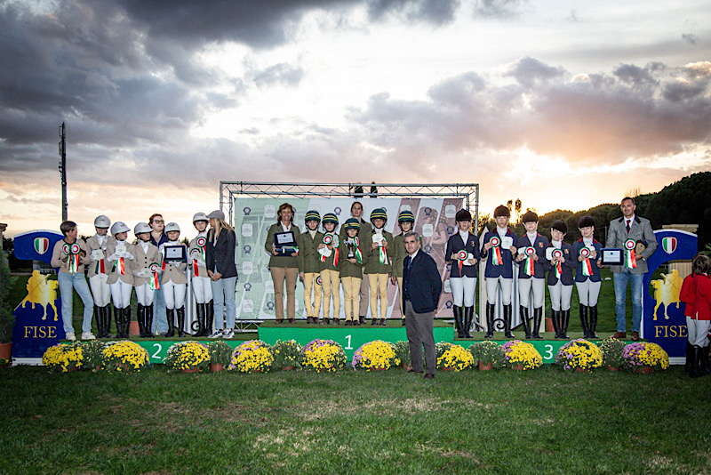 Nelle foto © FISE/Massimo Argenziano – sopra: il podio del Saggio delle Scuole, al centro il podio del Campionato delle Scuole, sotto: il podio individuale del Campionato delle Scuole)