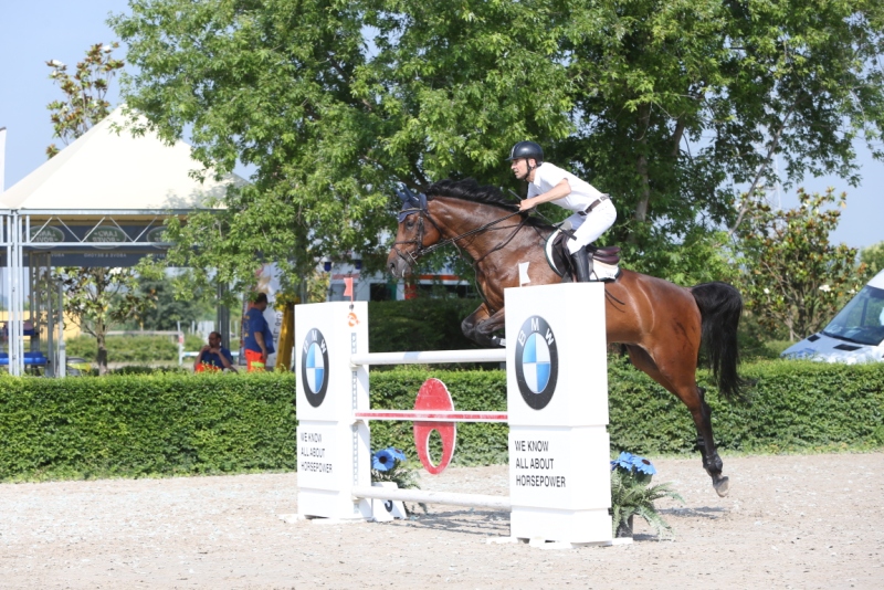 Ad aggiudicarsi la vittoria nel Gran Premio di Caselle, categoria C145/150 è stato il cavalieri friulano Leonardo Falomo in sella al suo Gandy van de Kroon, autori dell’unico doppio zero della categoria. Piazza d’onore per l’amazzone svizzera con licenza d’ospite Katharina Inderbitzin su Centos, che ha archiviato due penalità complessive per il tempo nelle due manche. Terzo posto con 3/0 per il lombardo Alessandro Zanoni in sella a Gero van de Waaienburg (prop. Giovanni Oberti).